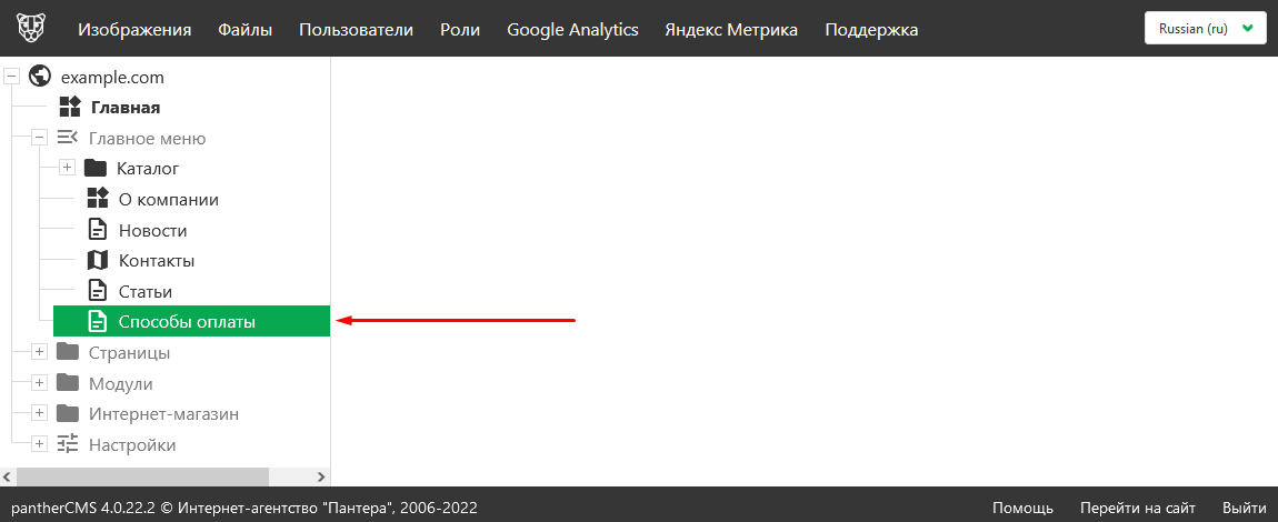 Пункт меню создан