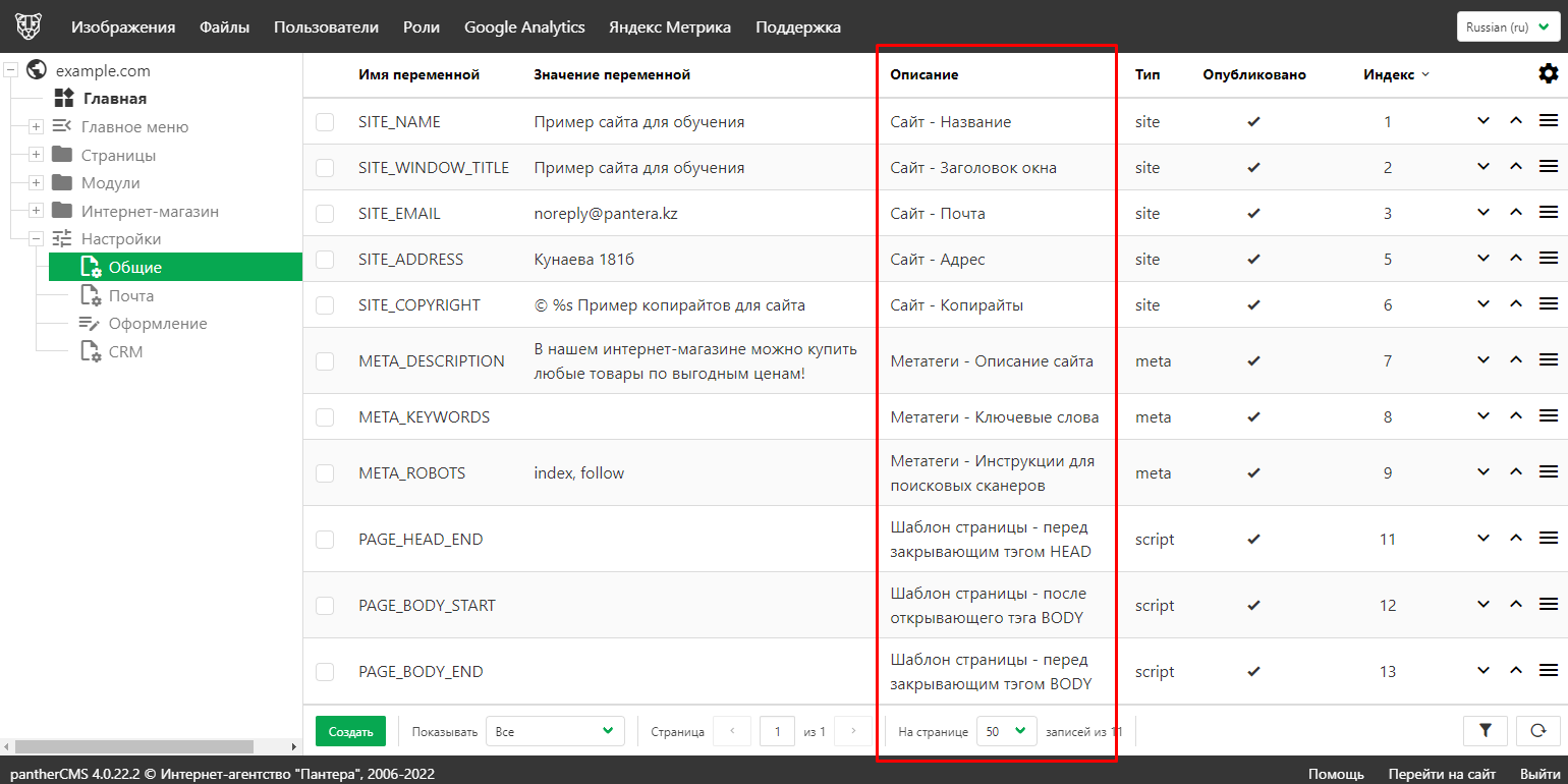 Общие Переменные