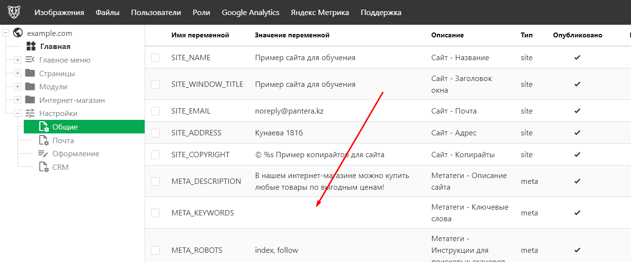 Ключевые слова страницы