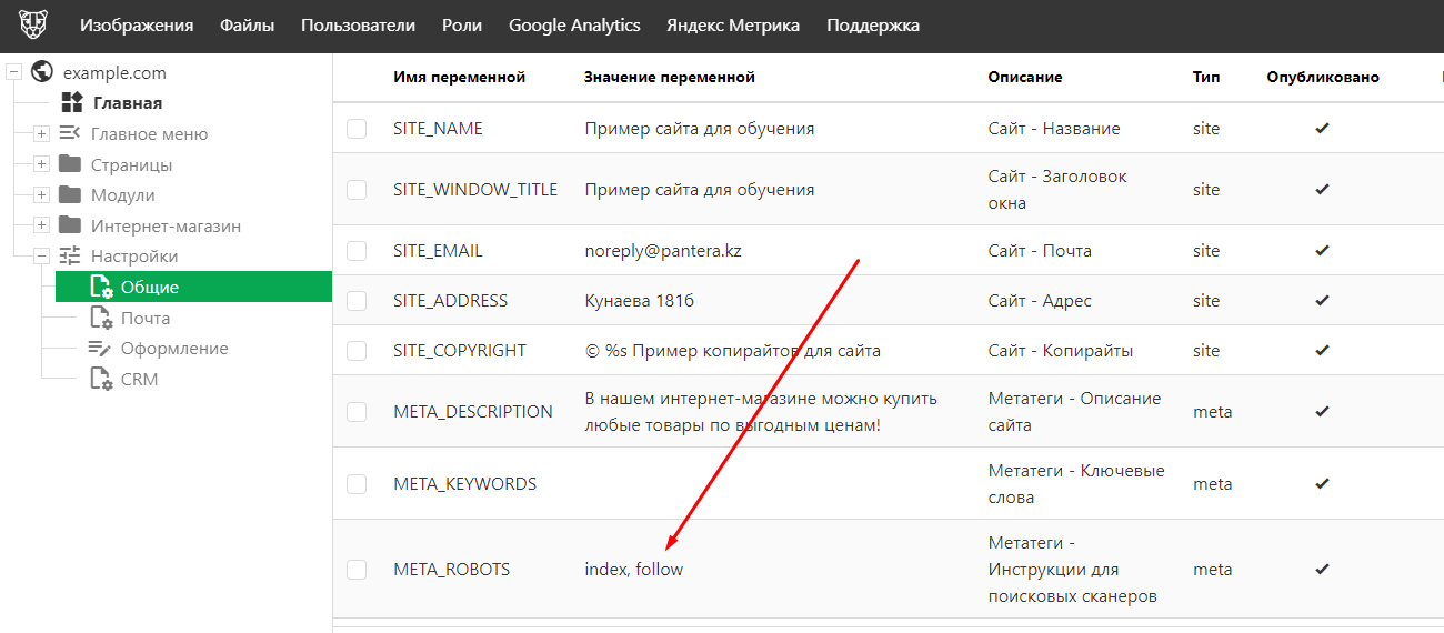 Разрешение индексации